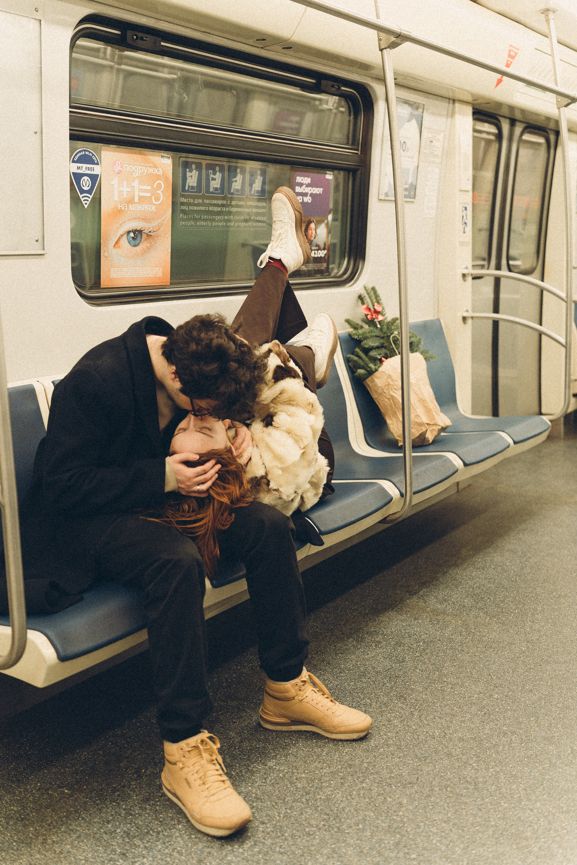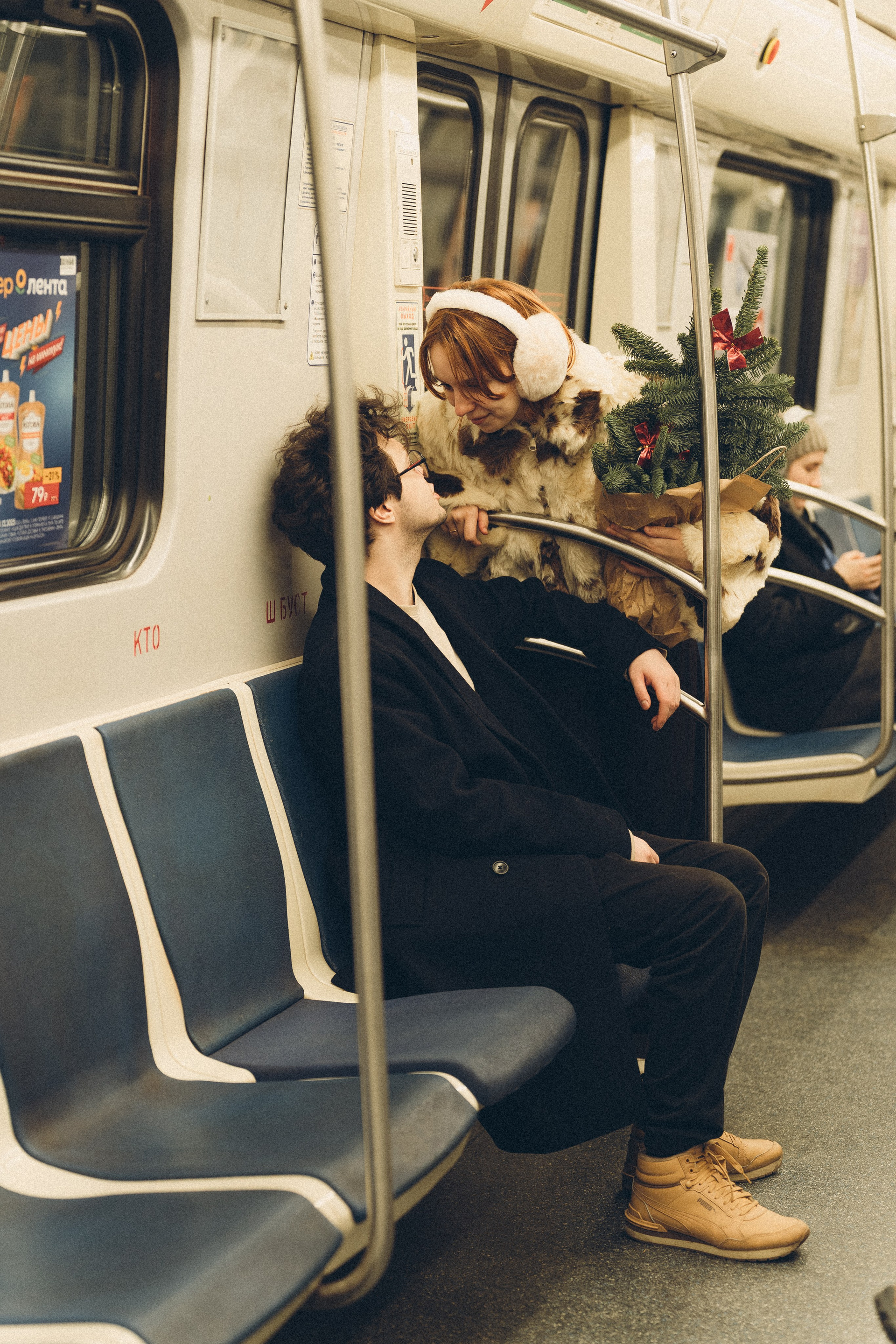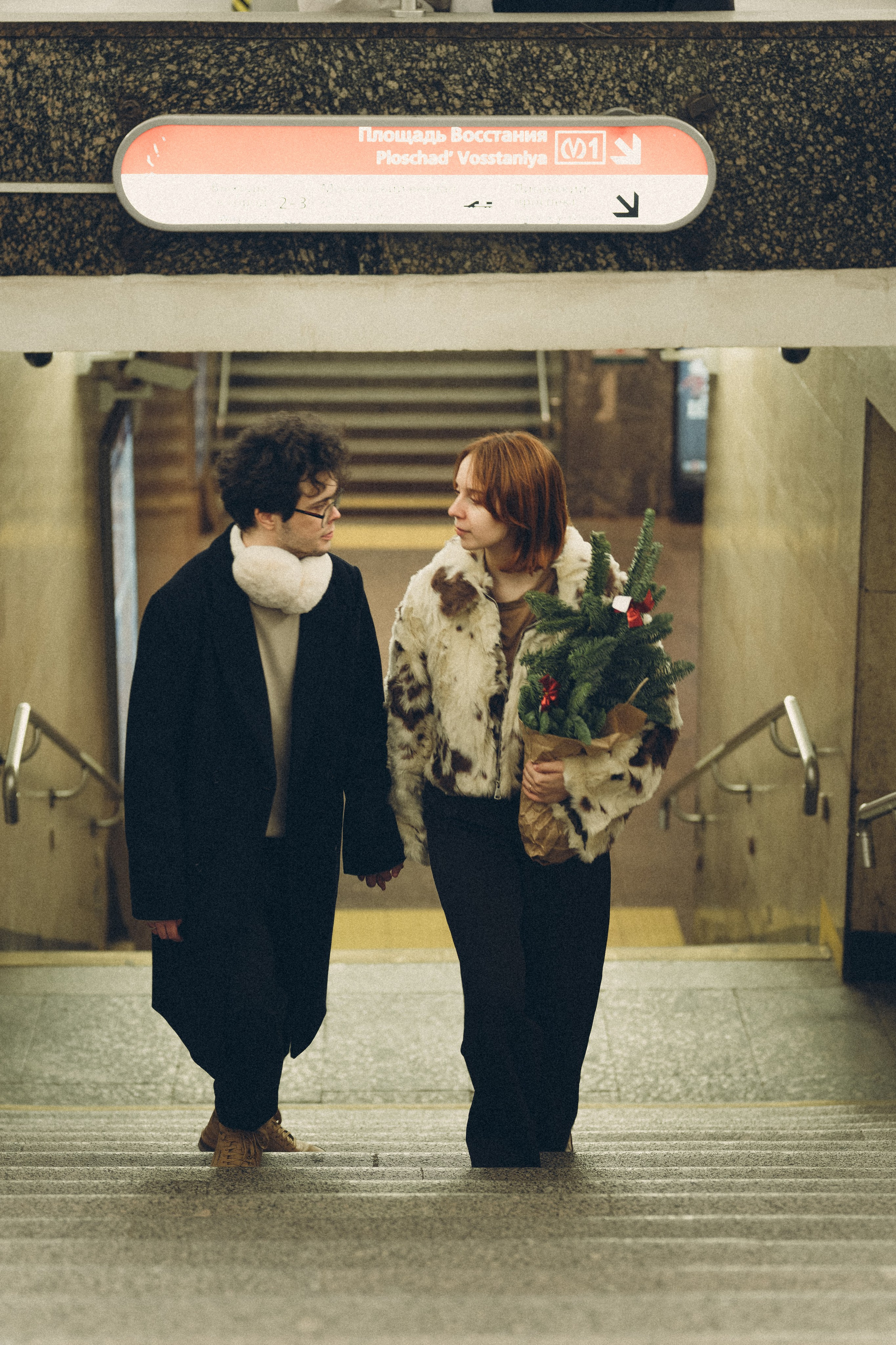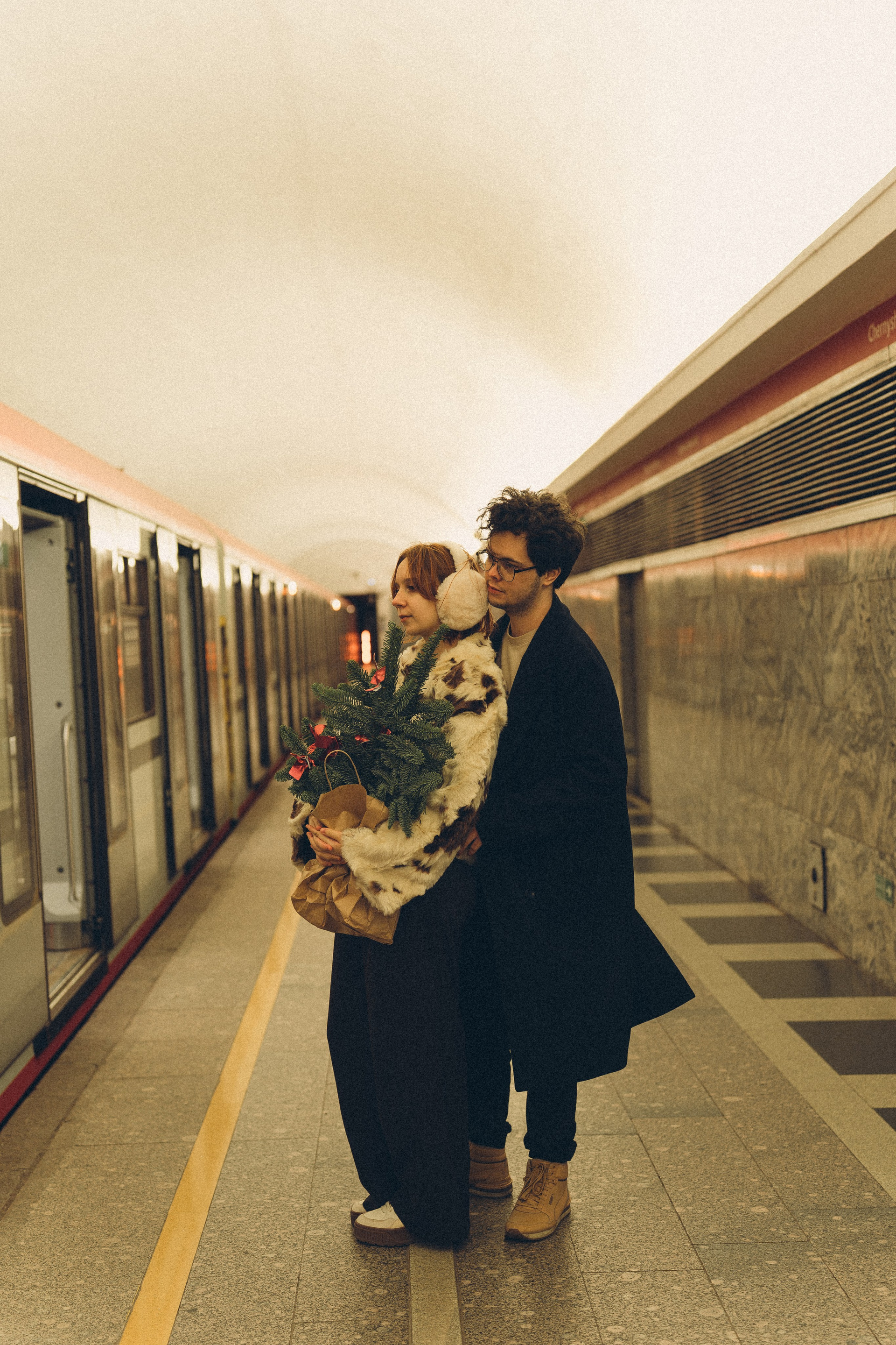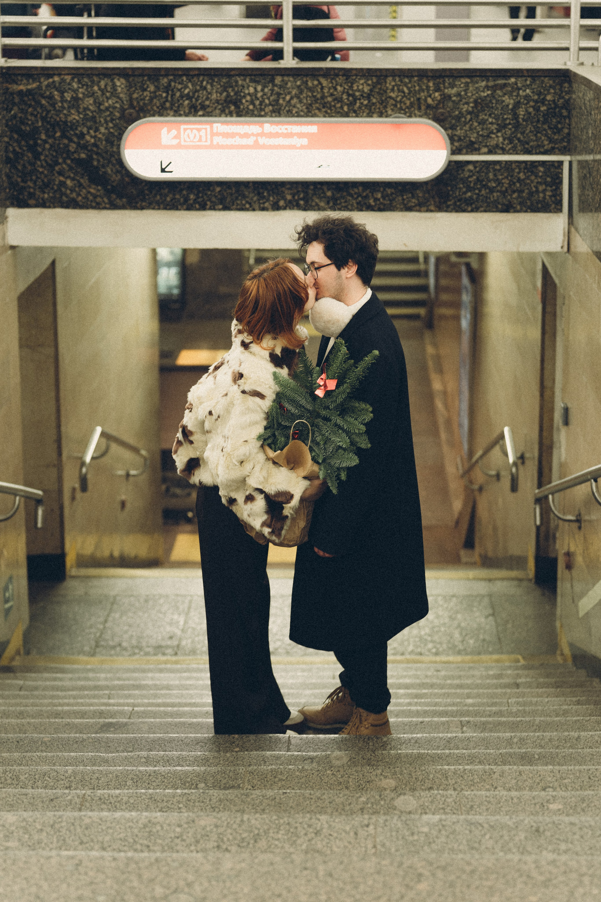 НОВОГОДНЯЯ ФОТОСЕСИИЯ ПАРЫ В МЕТРО ЛЮБОВЬ