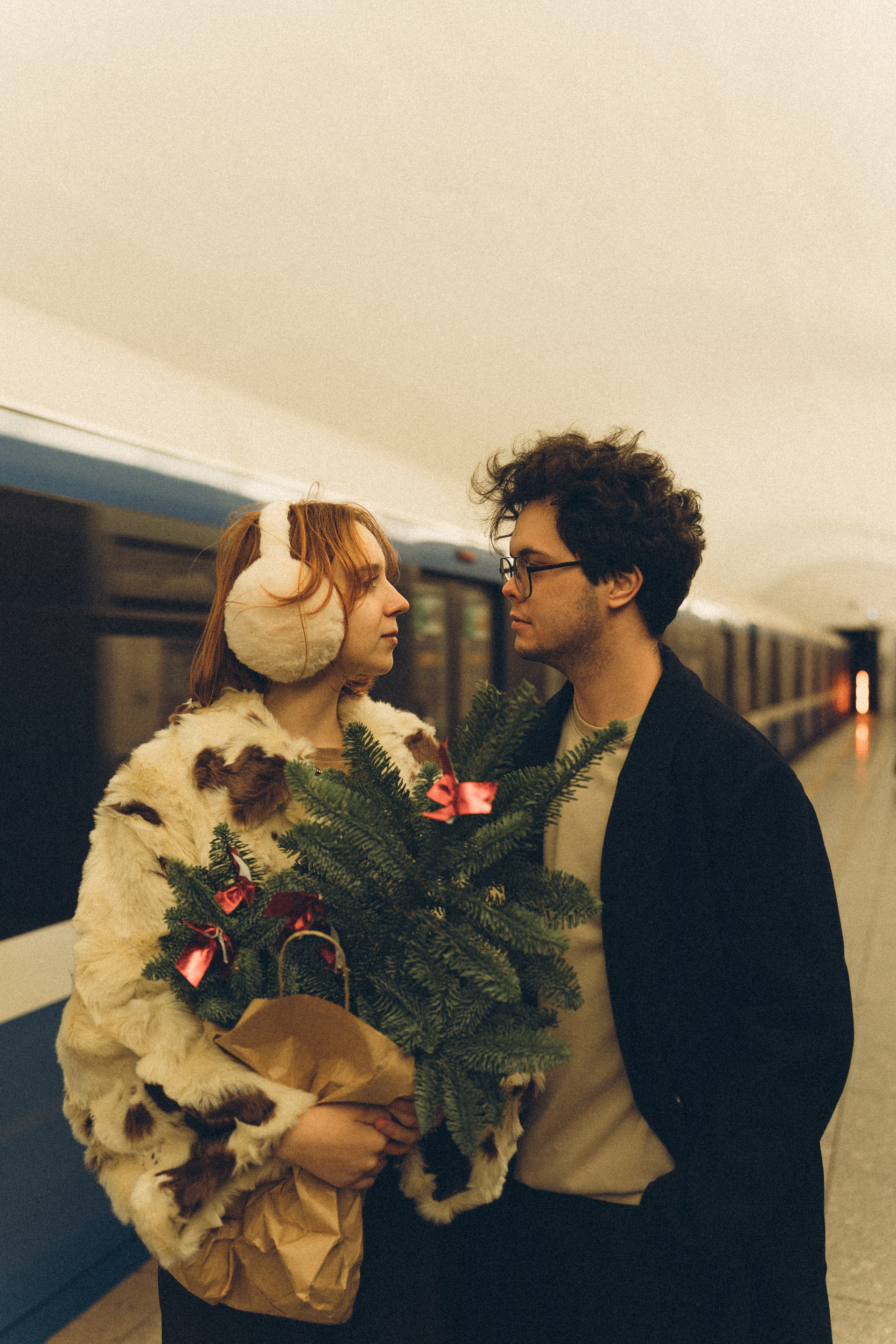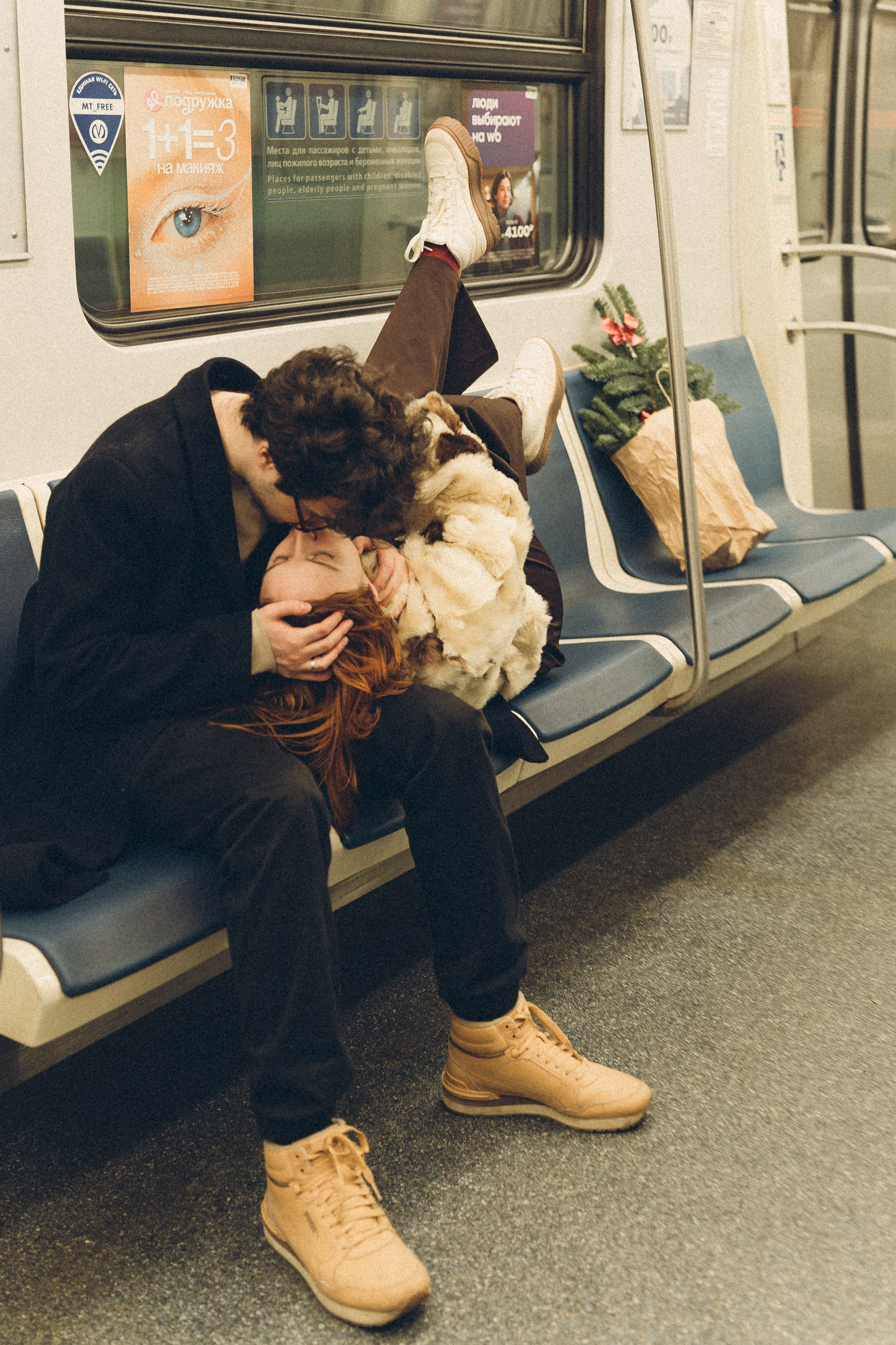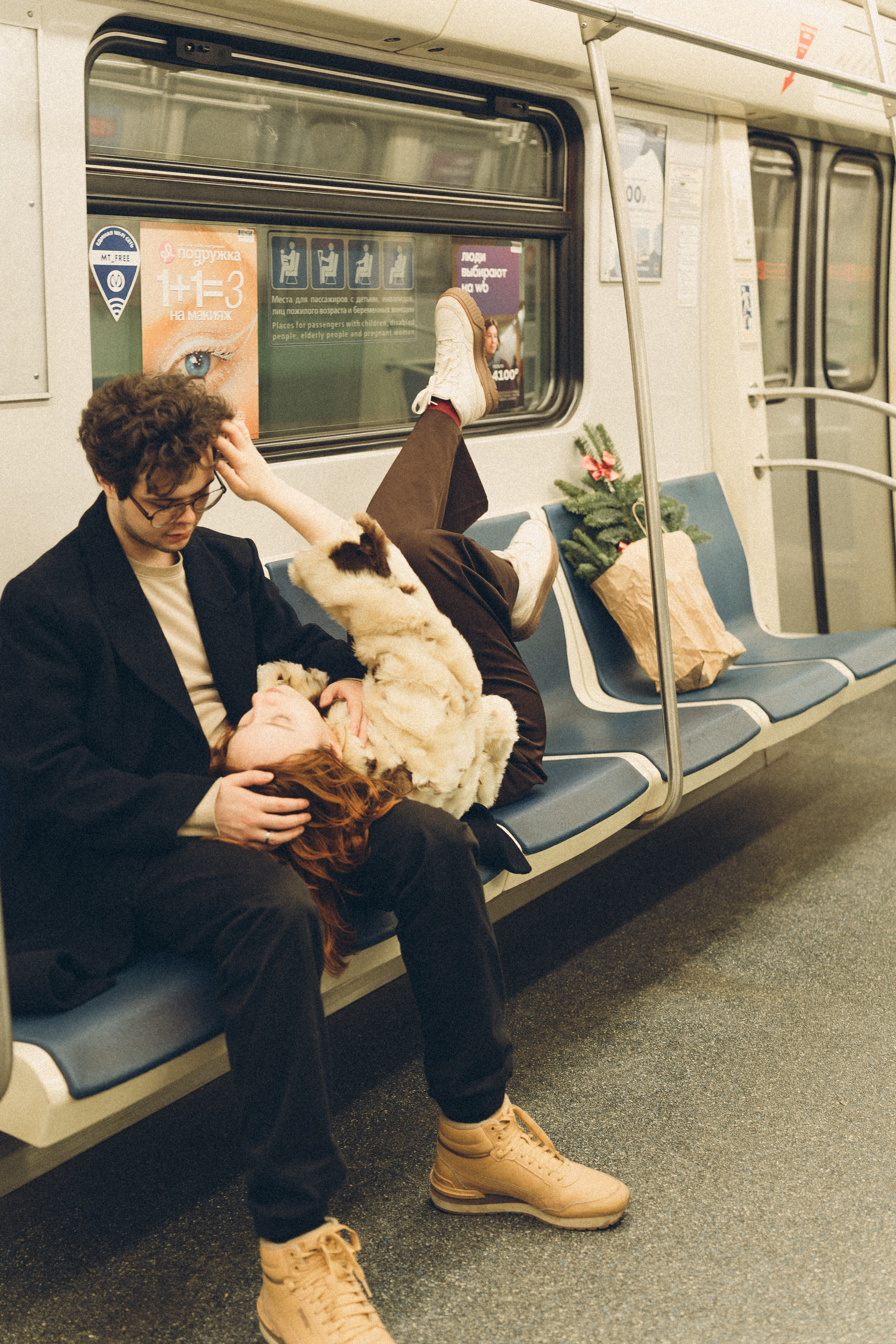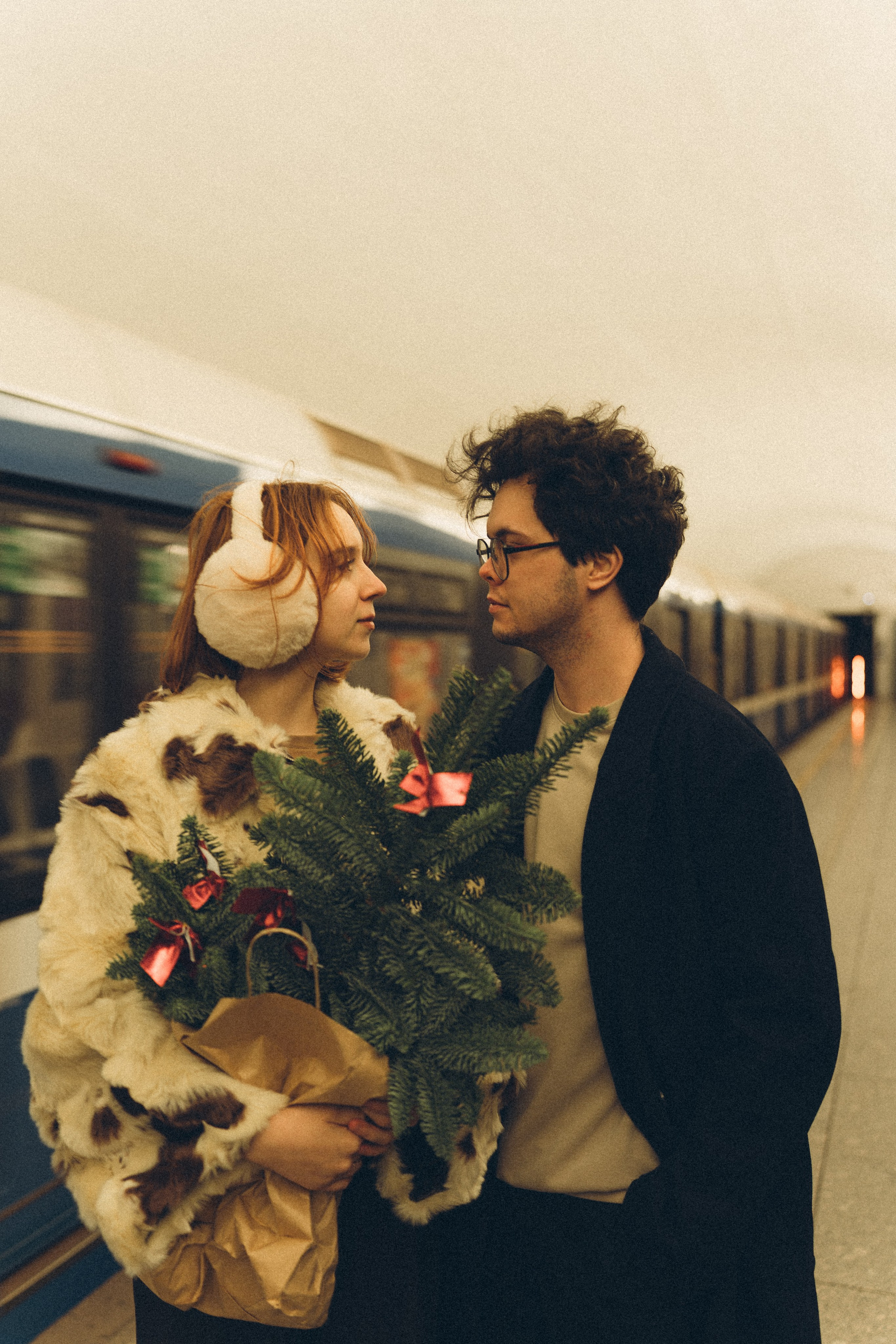 НОВОГОДНЯЯ ФОТОСЕСИИЯ ПАРЫ В МЕТРО ЛЮБОВЬ