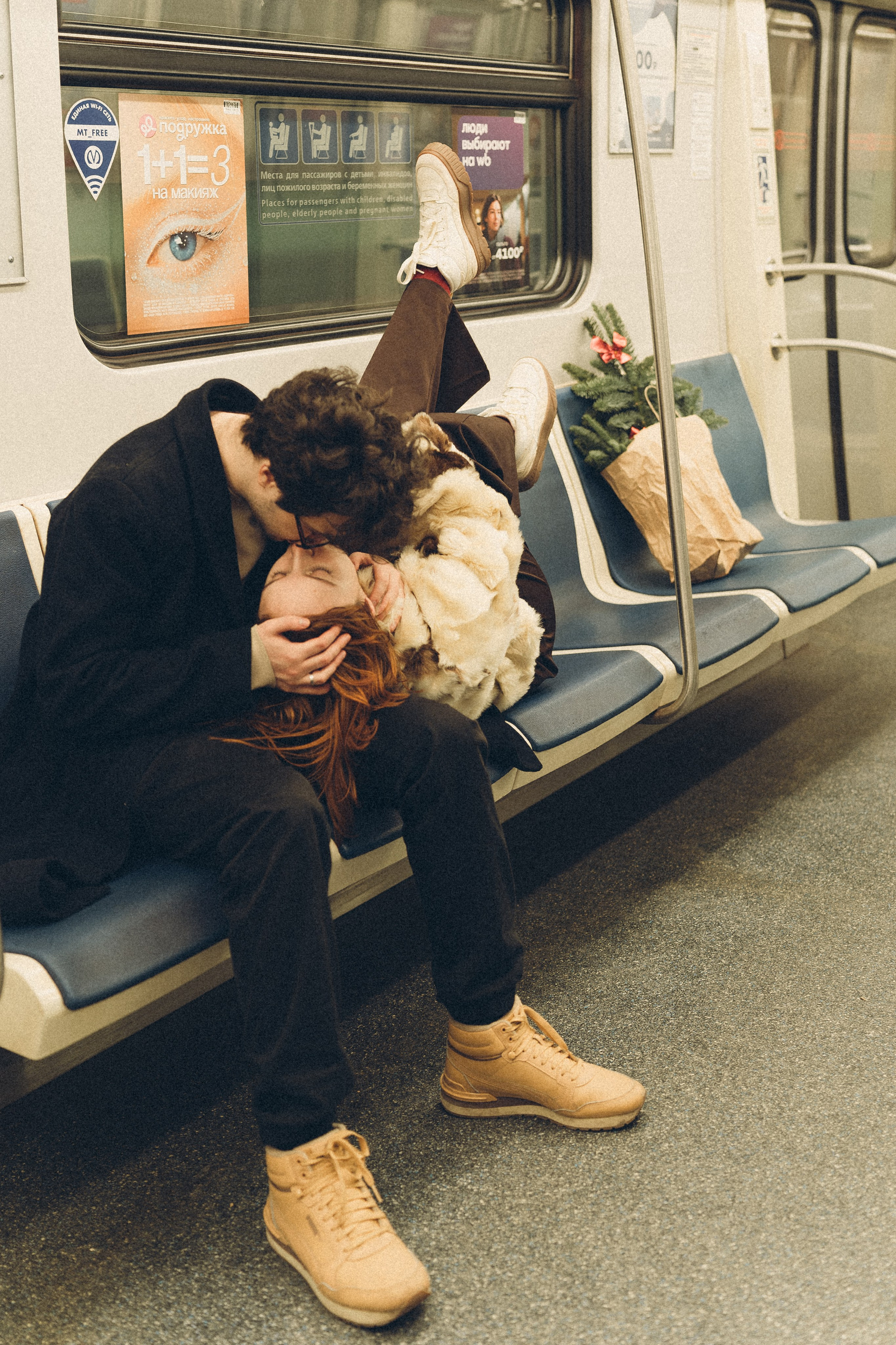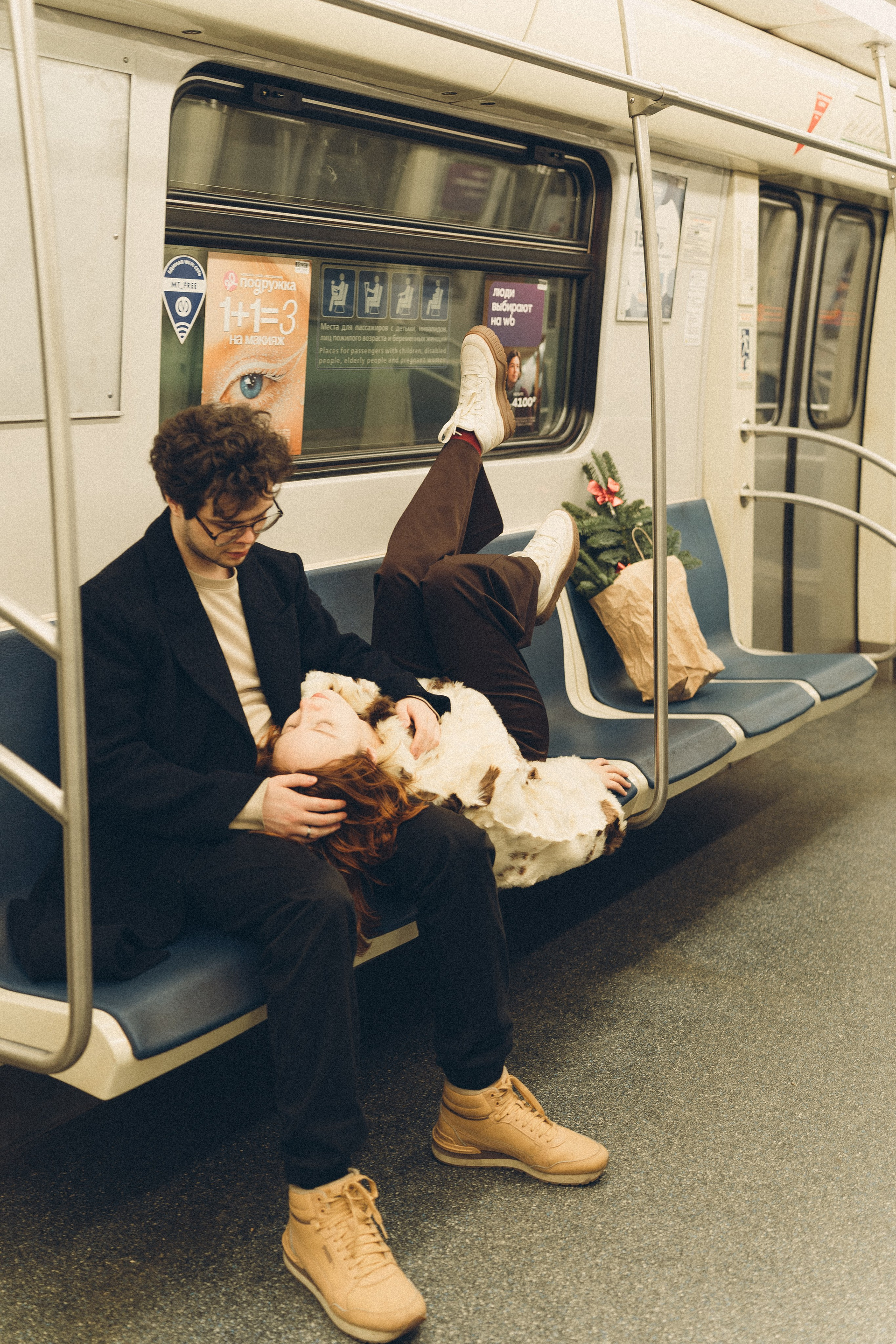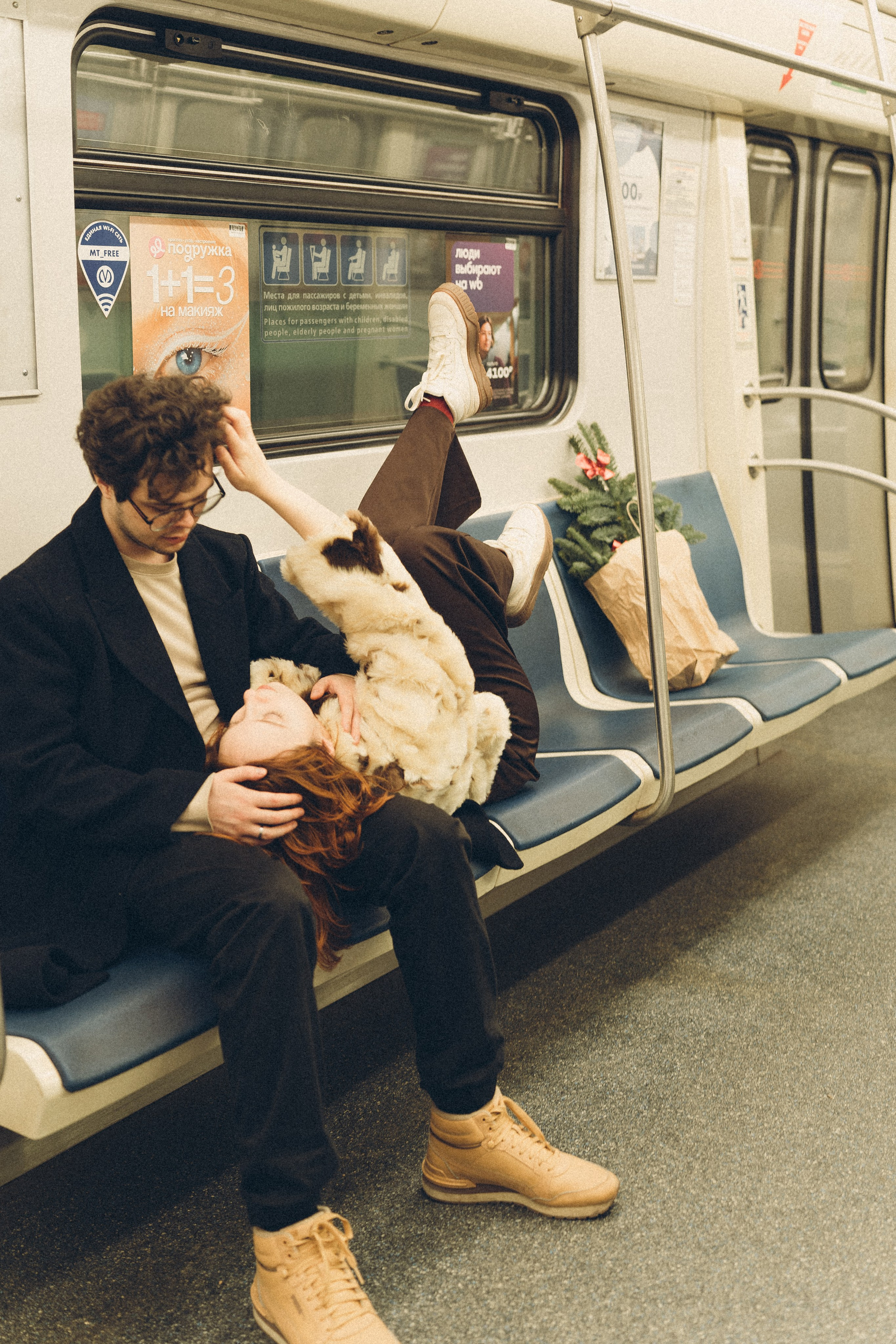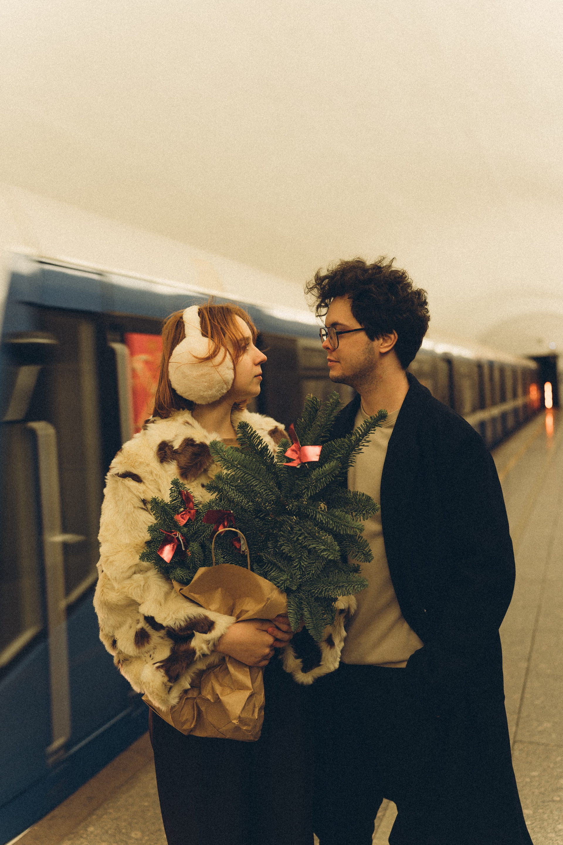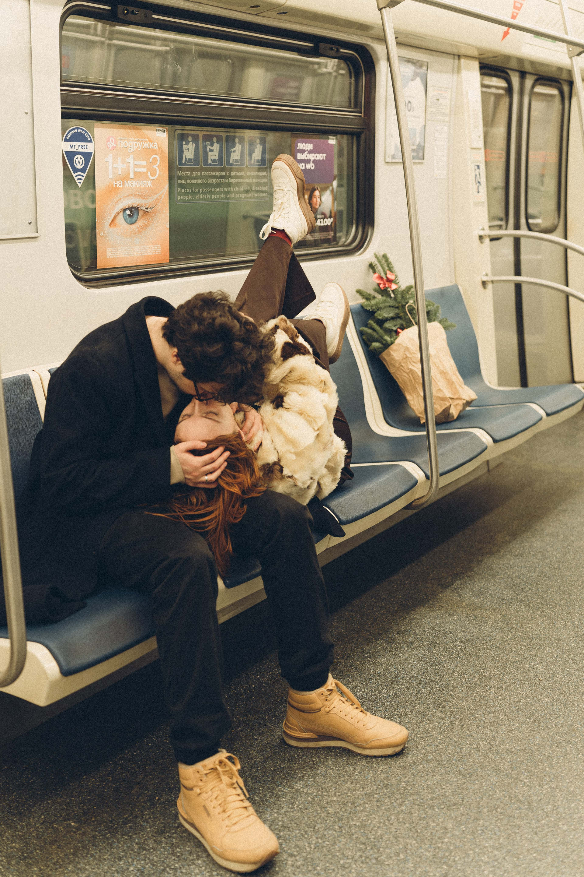 НОВОГОДНЯЯ ФОТОСЕСИИЯ ПАРЫ В МЕТРО ЛЮБОВЬ