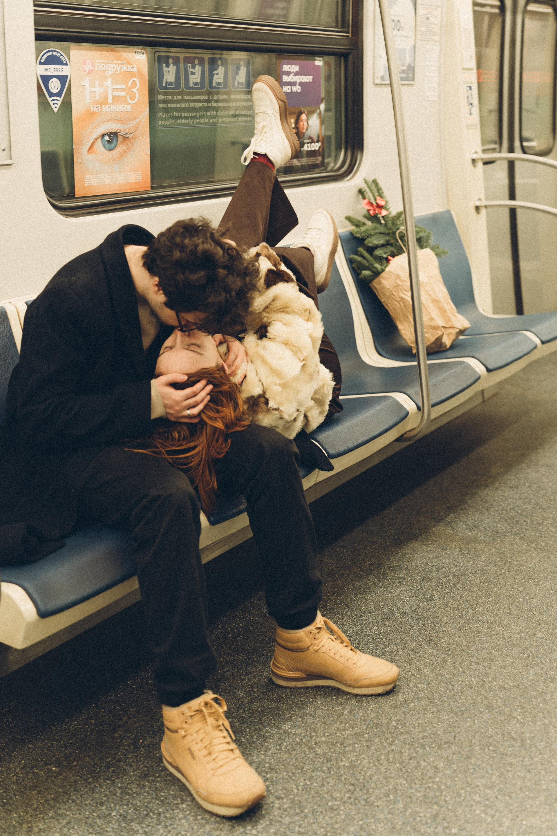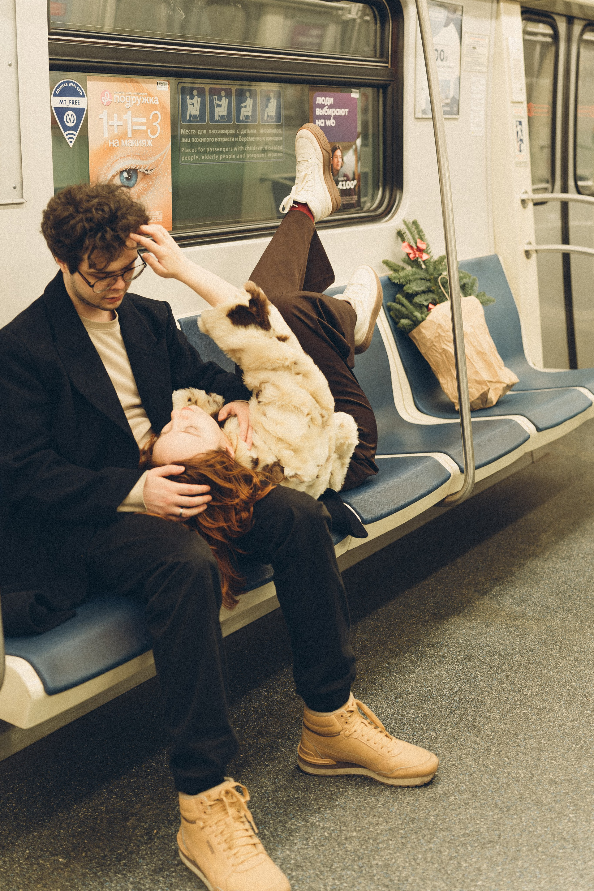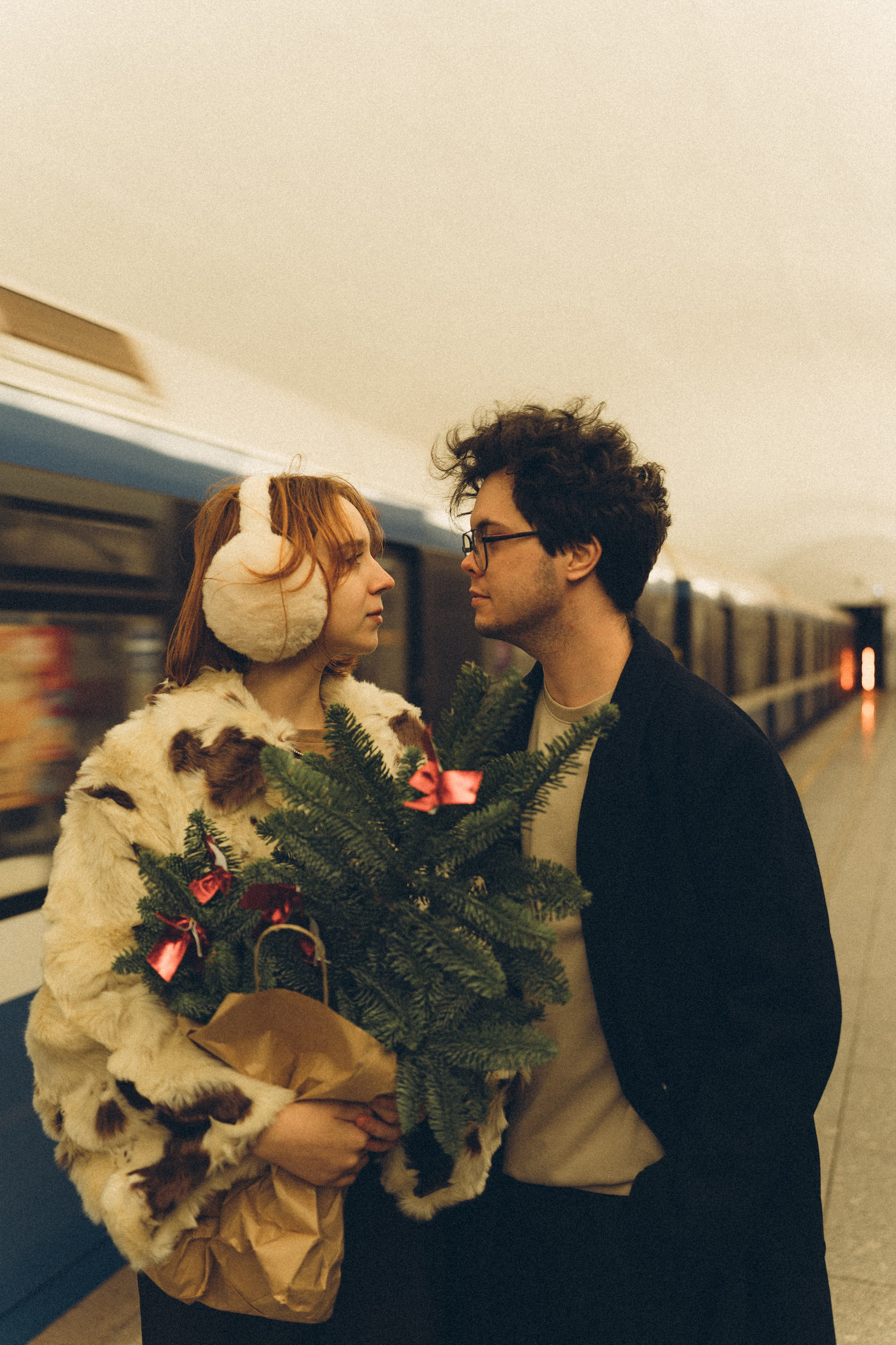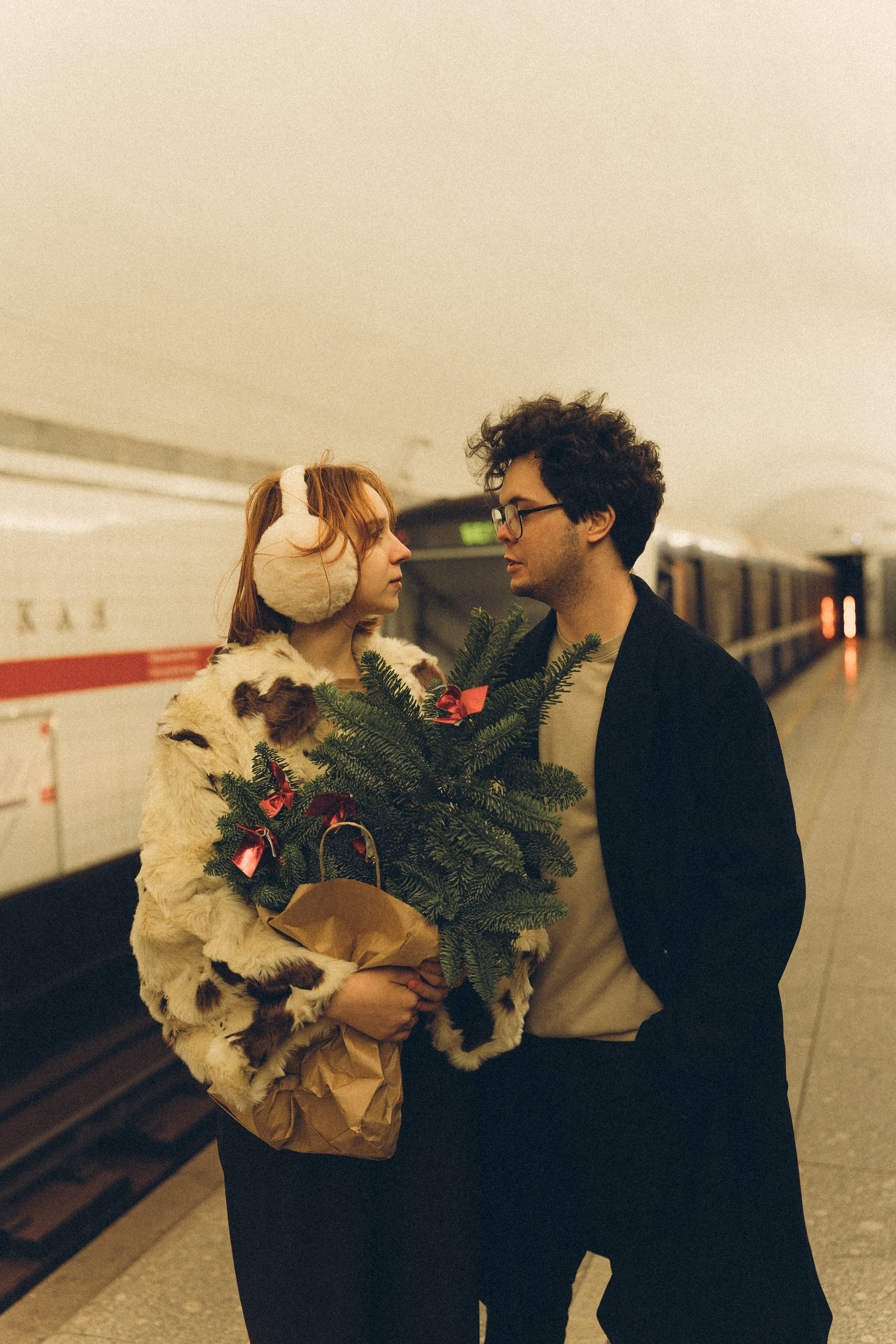 НОВОГОДНЯЯ ФОТОСЕСИИЯ ПАРЫ В МЕТРО ЛЮБОВЬ