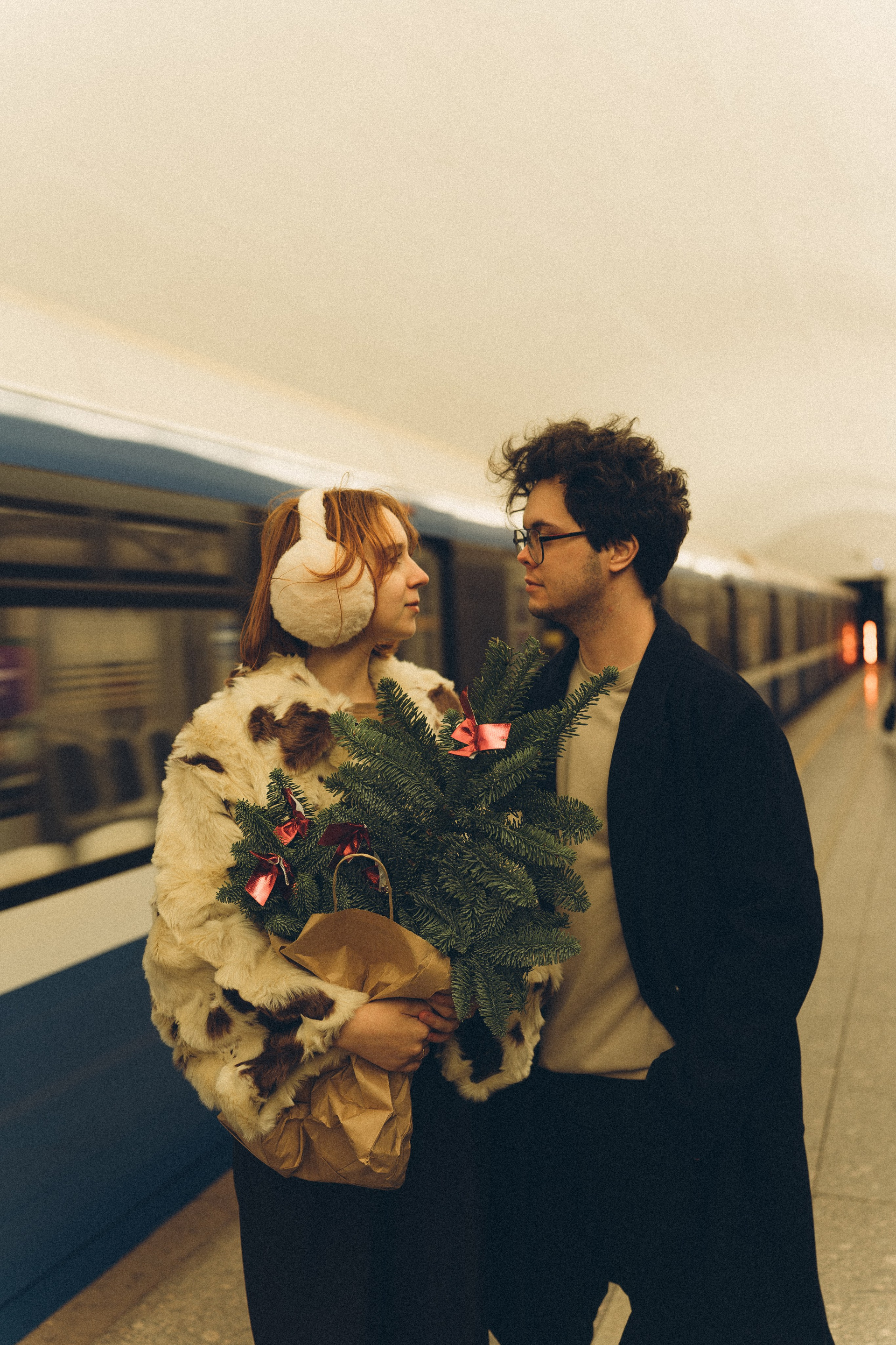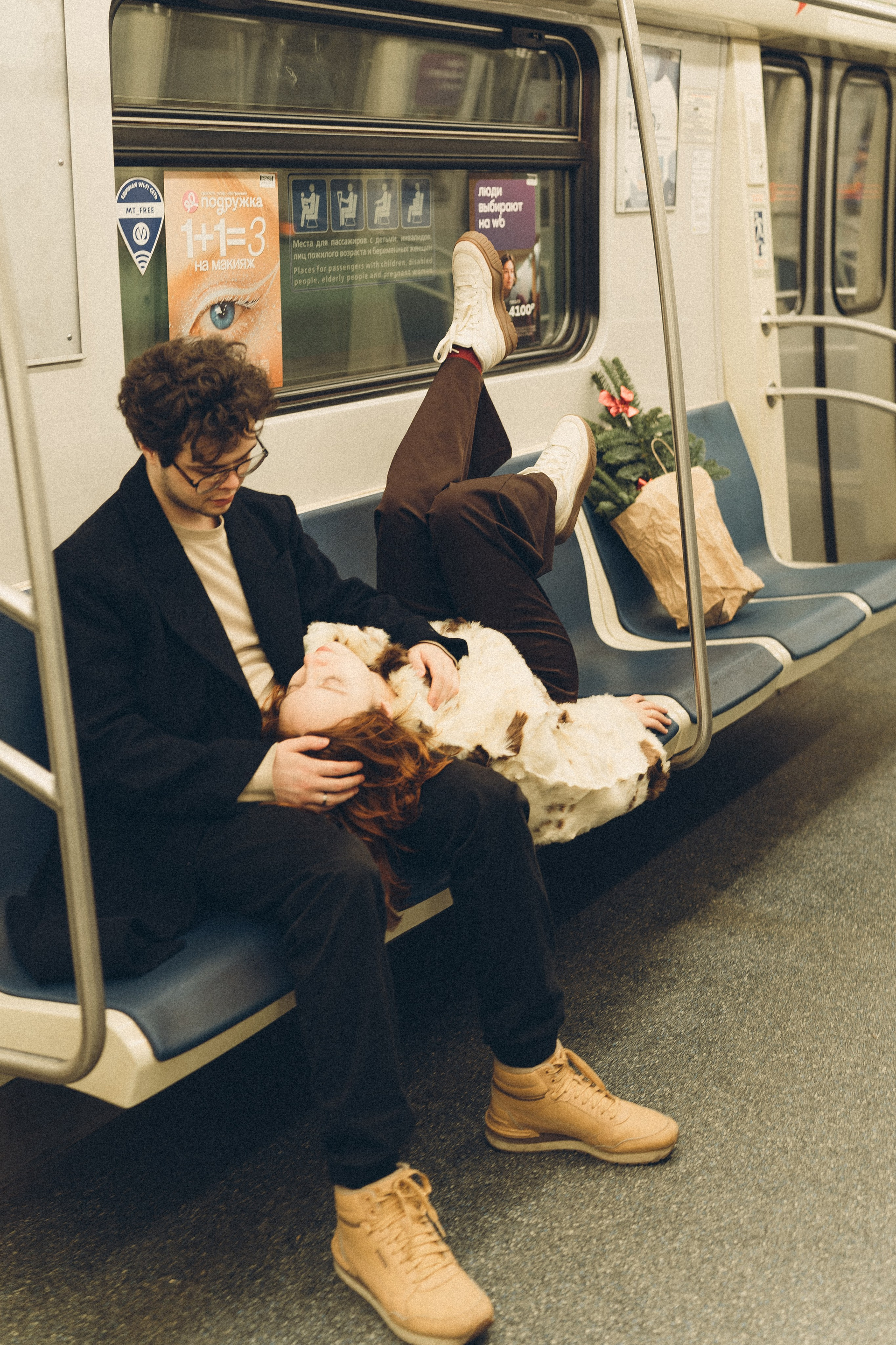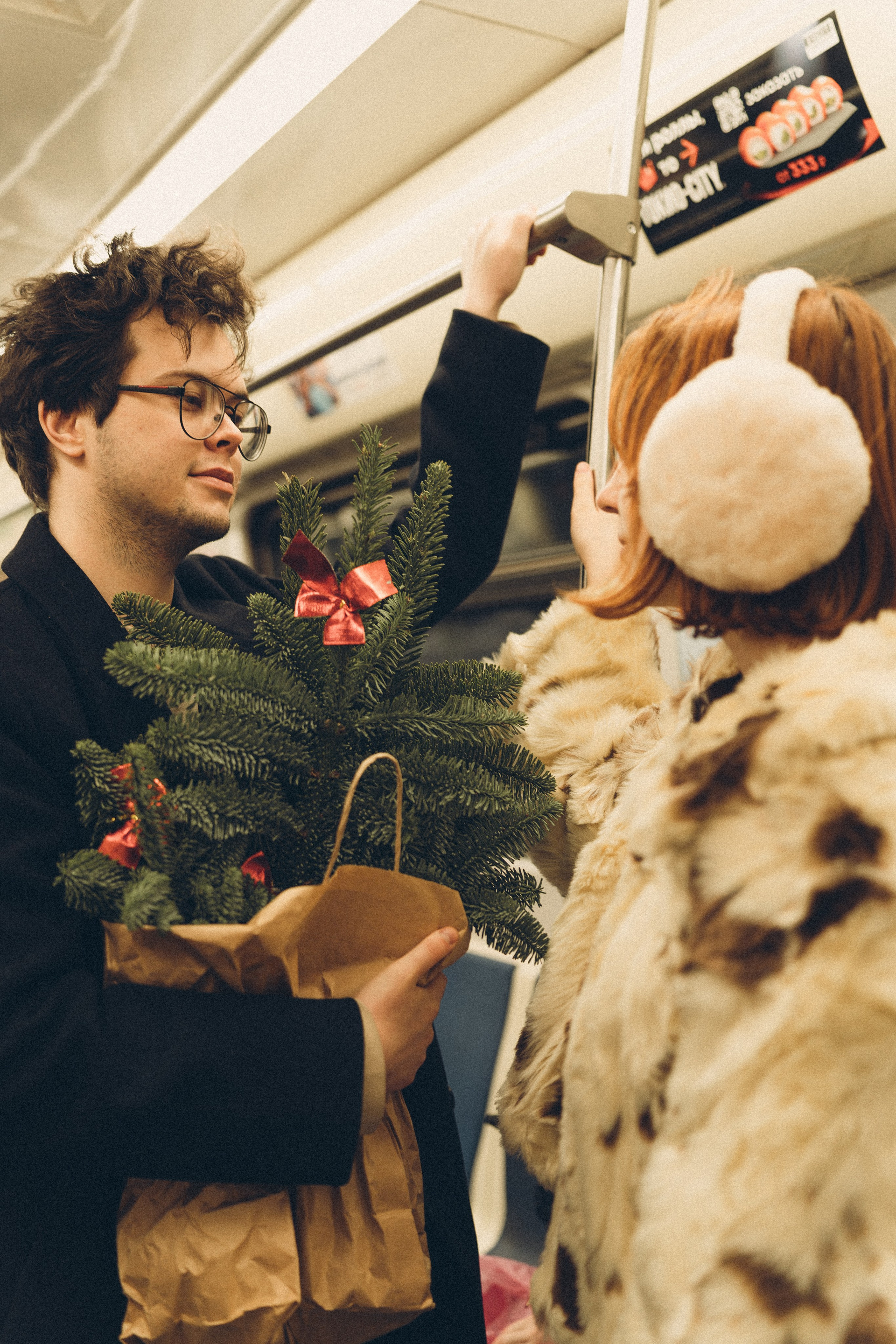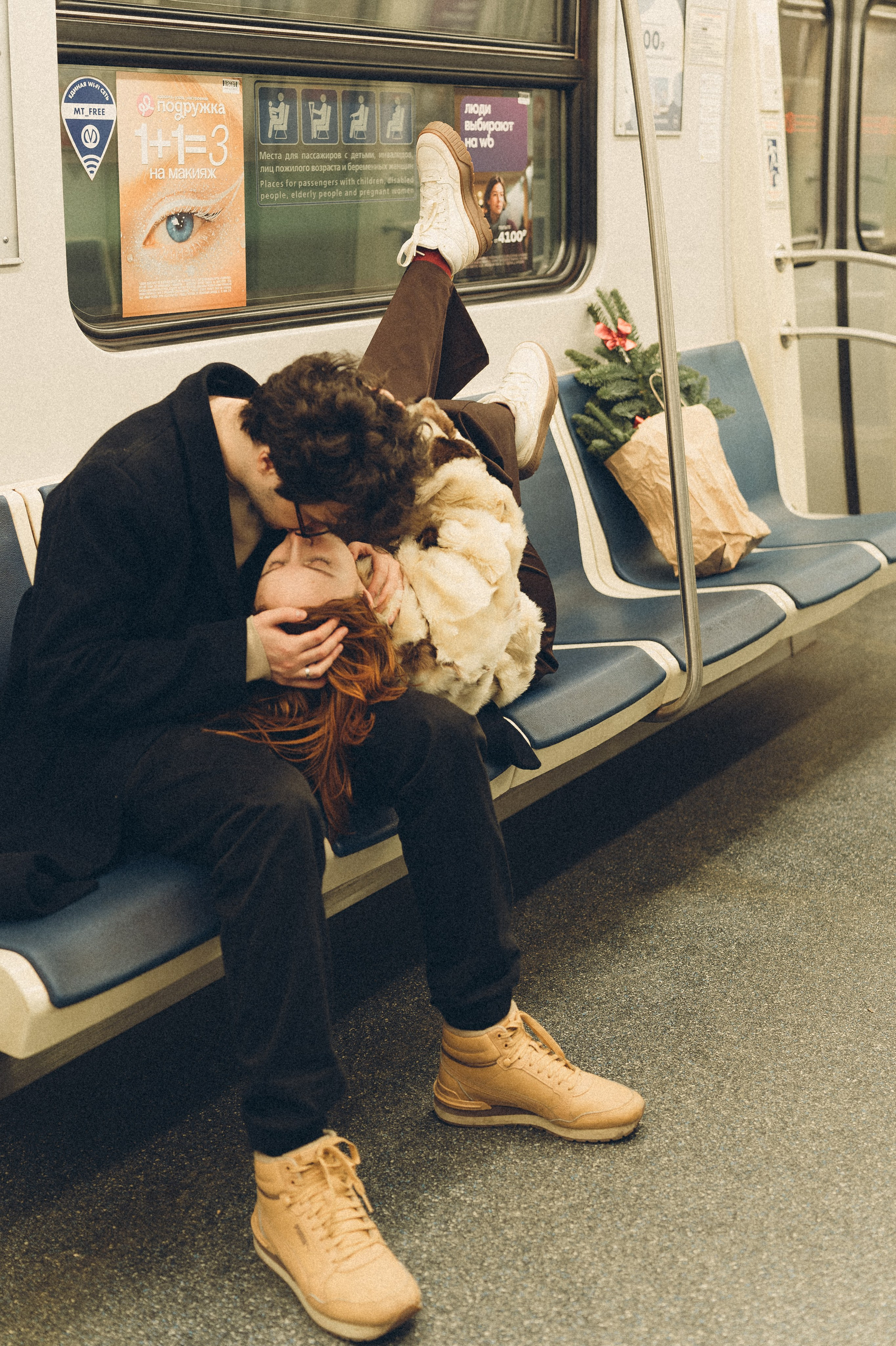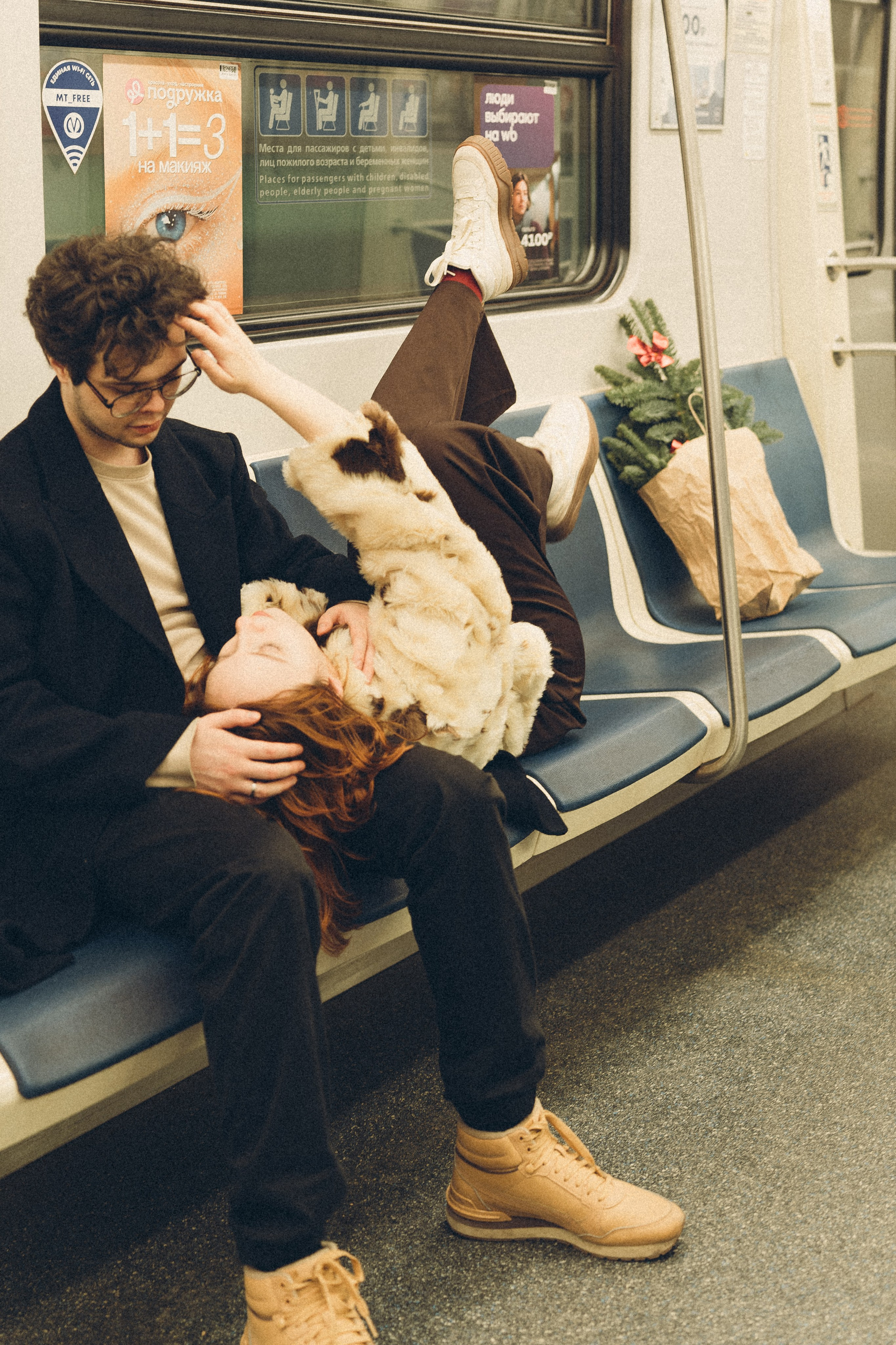 НОВОГОДНЯЯ ФОТОСЕСИИЯ ПАРЫ В МЕТРО ЛЮБОВЬ