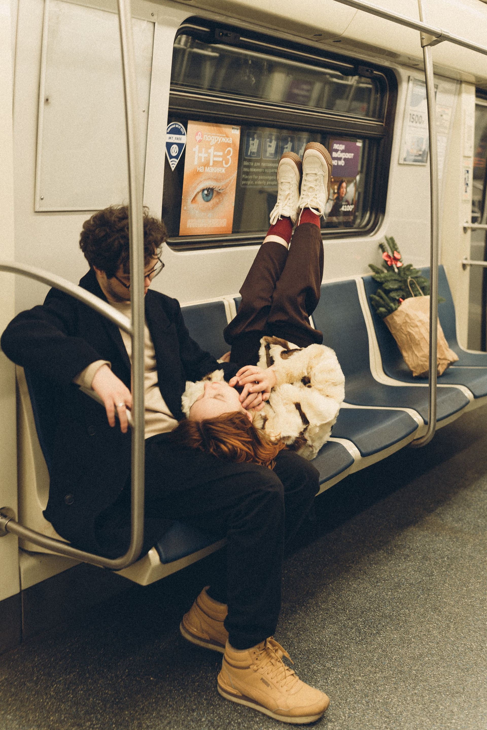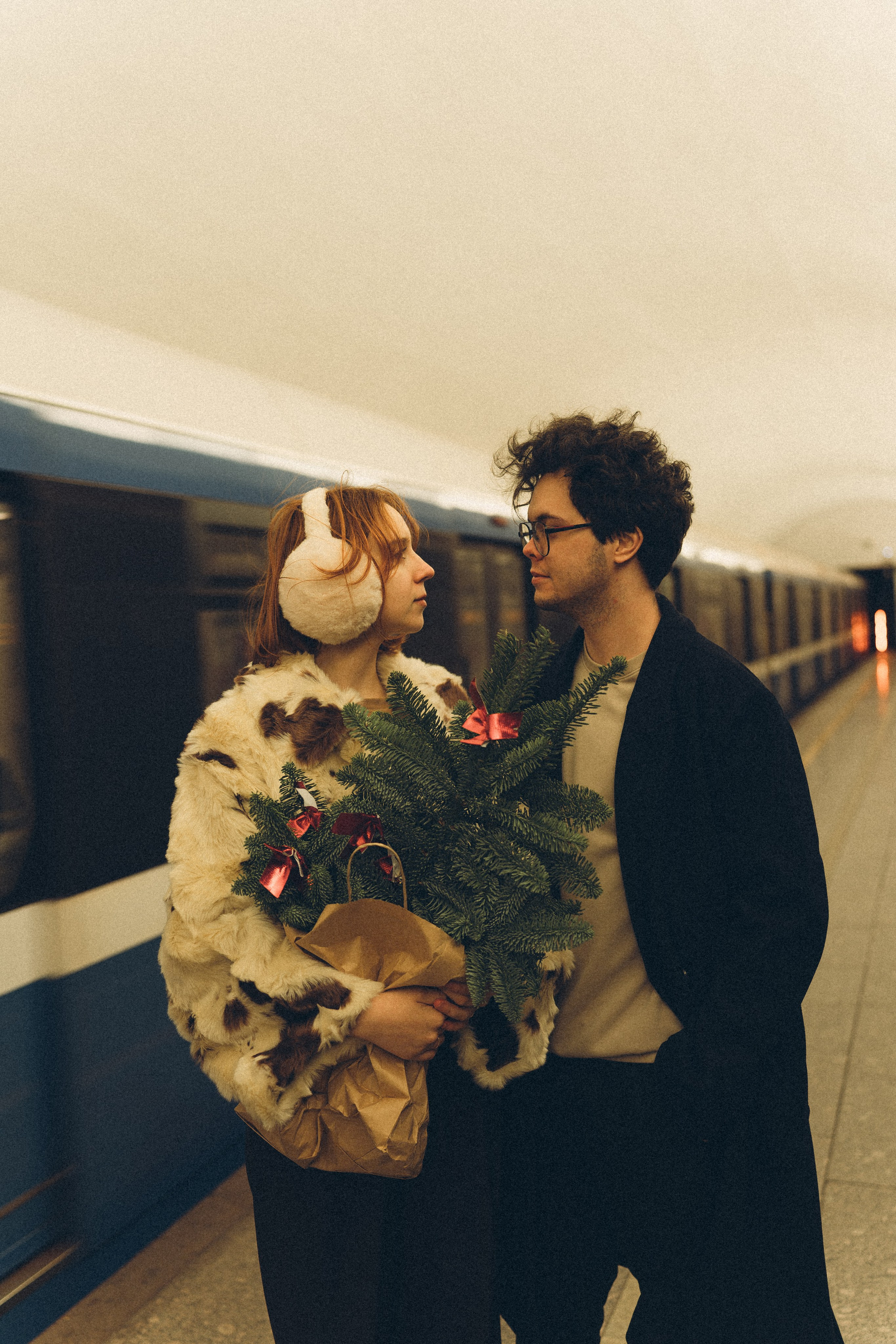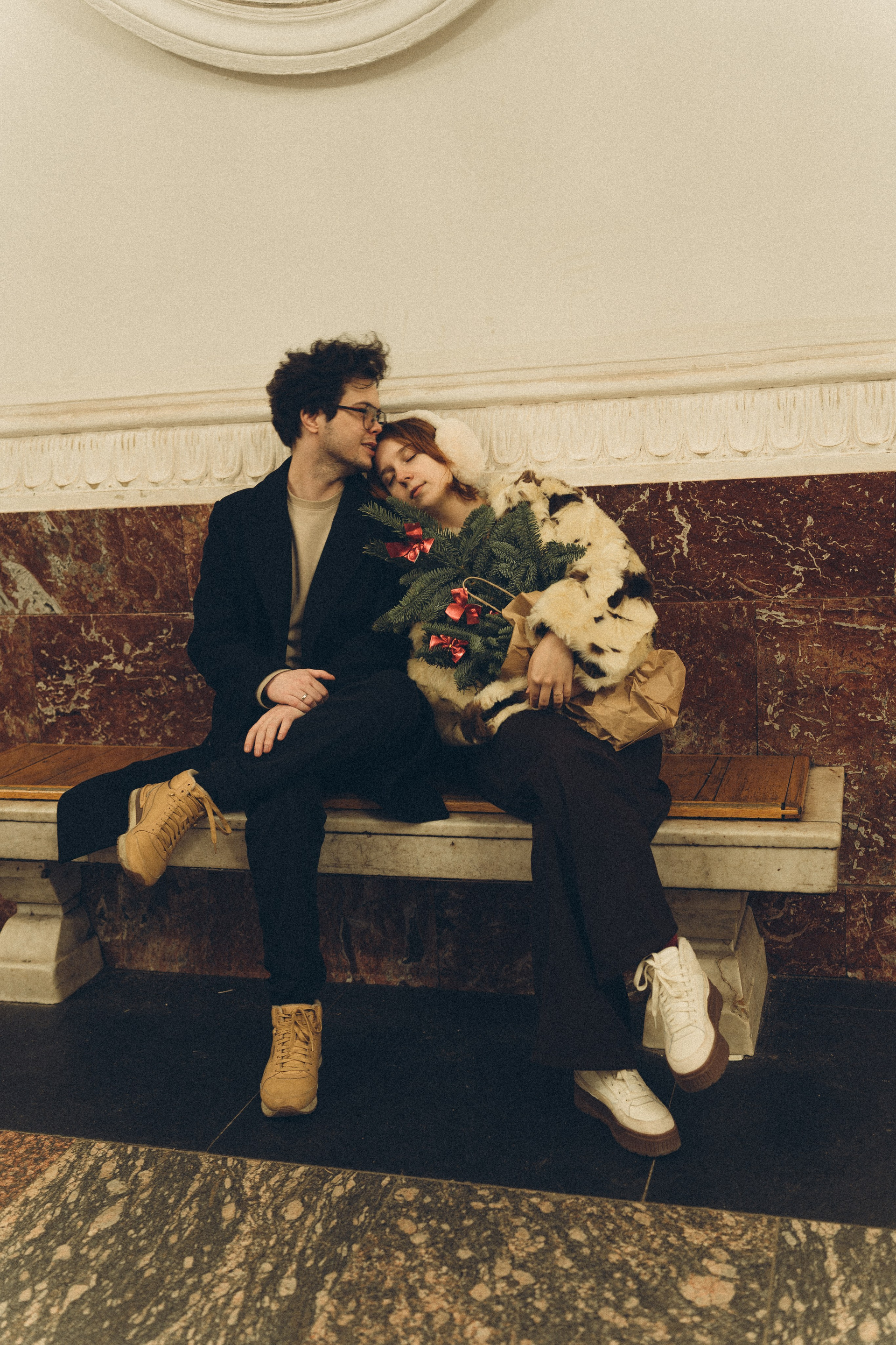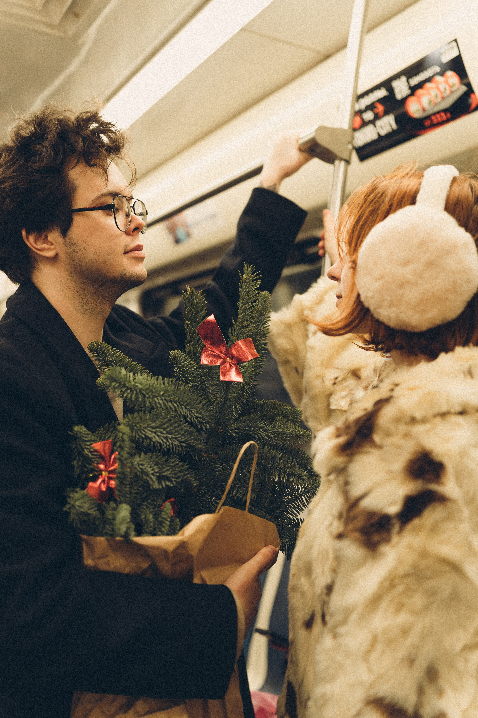 НОВОГОДНЯЯ ФОТОСЕСИИЯ ПАРЫ В МЕТРО ЛЮБОВЬ