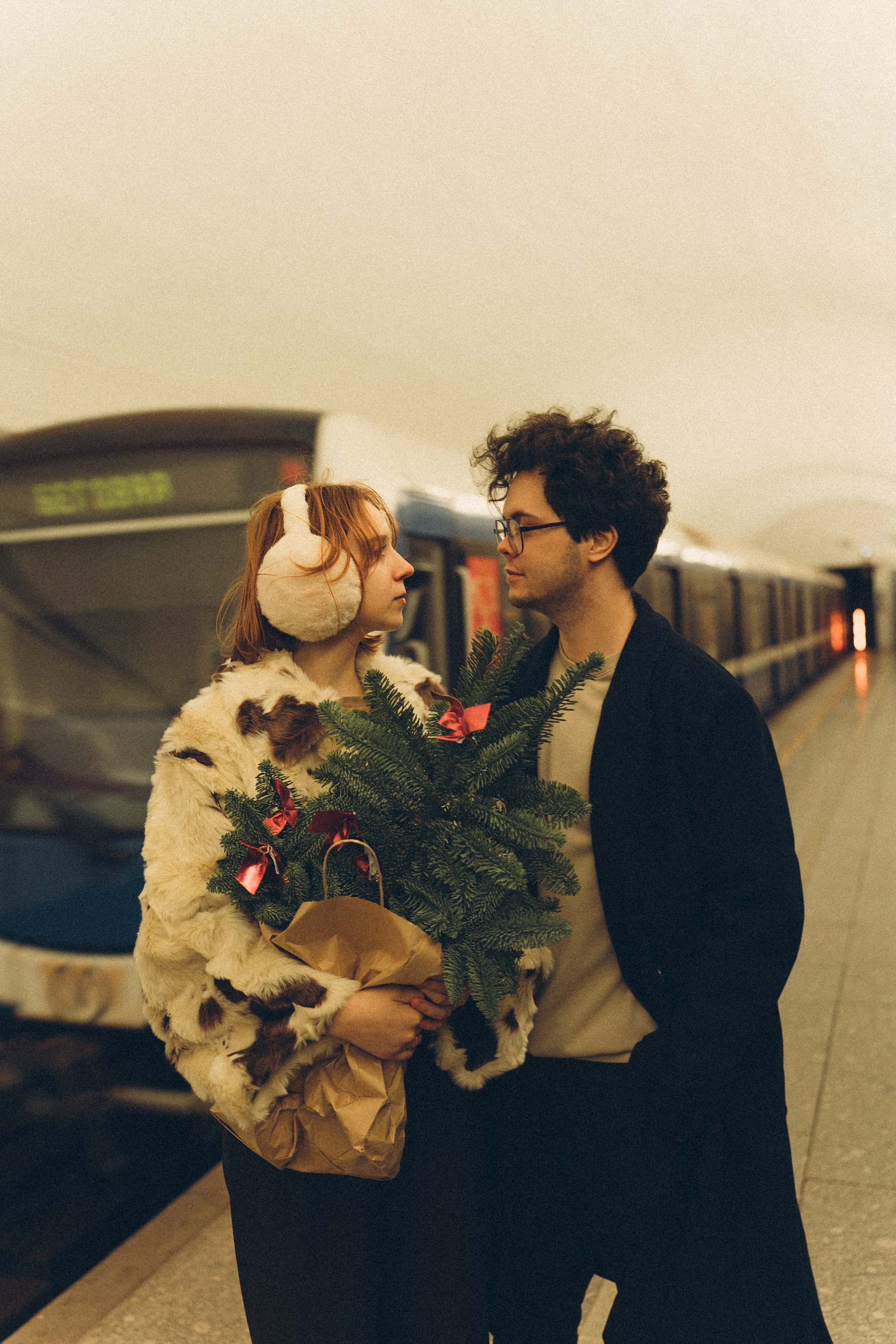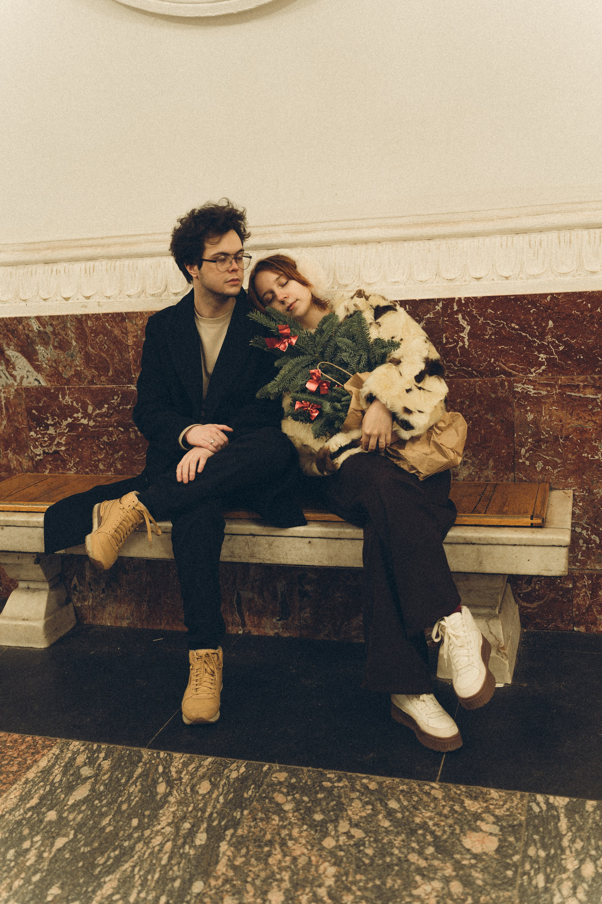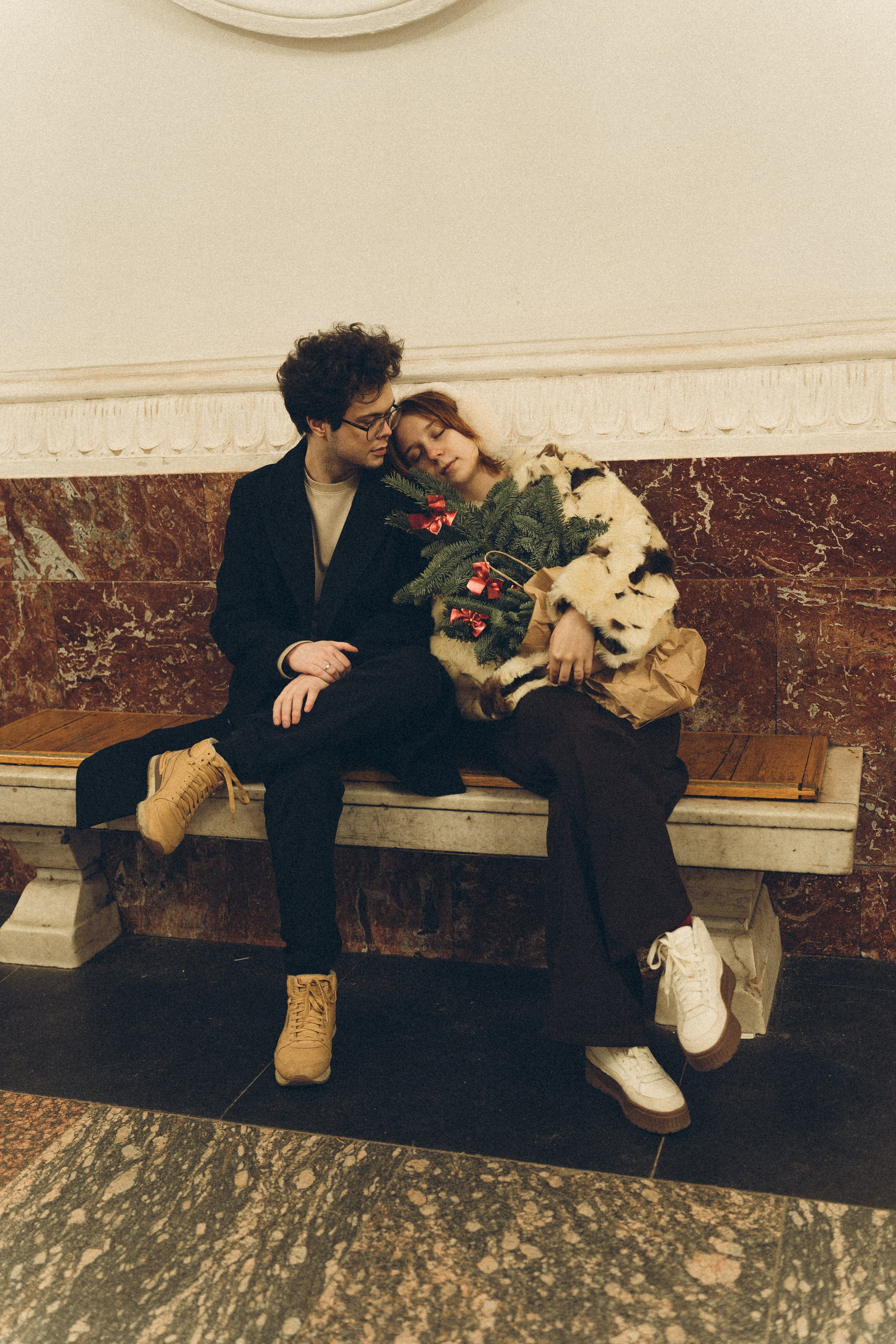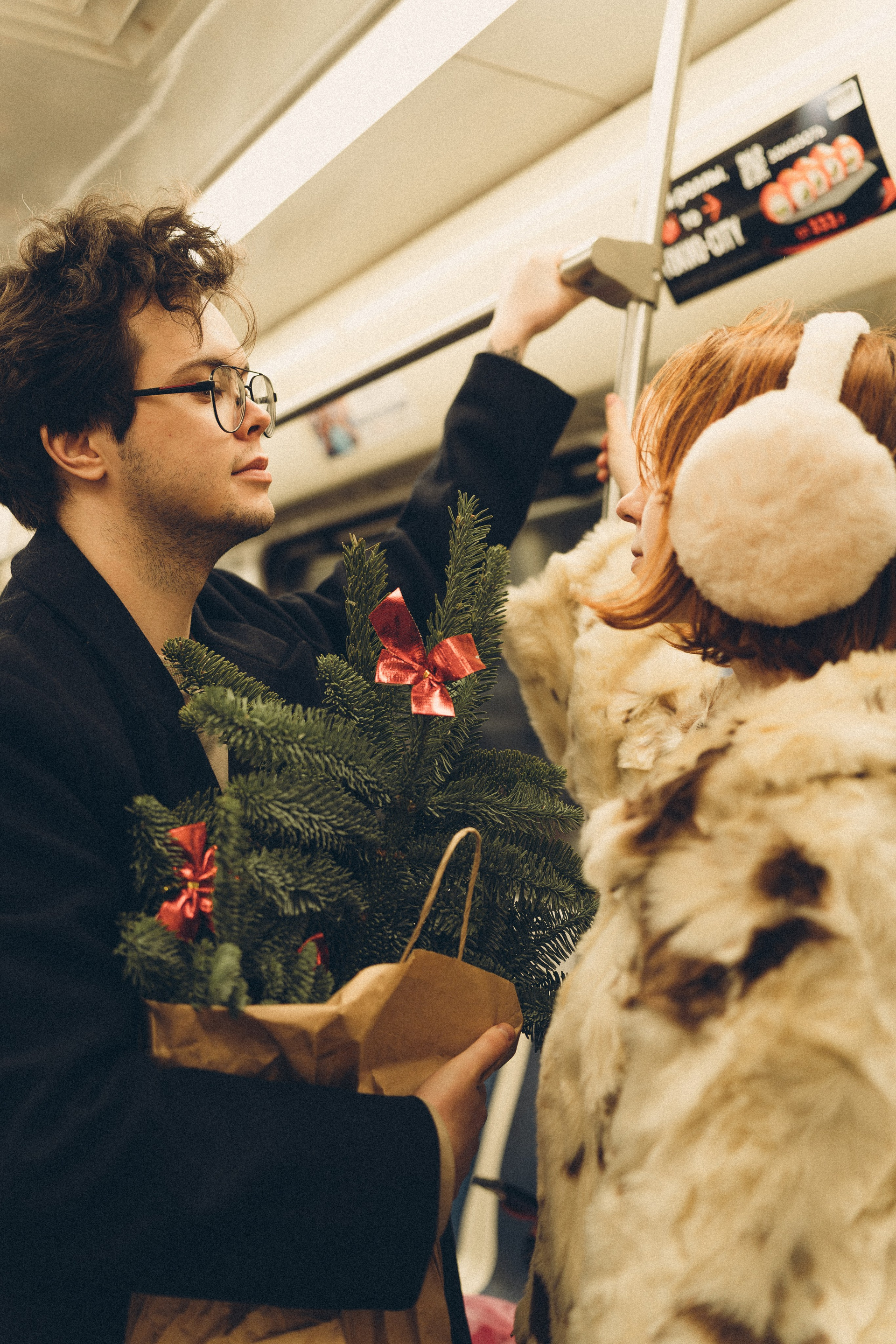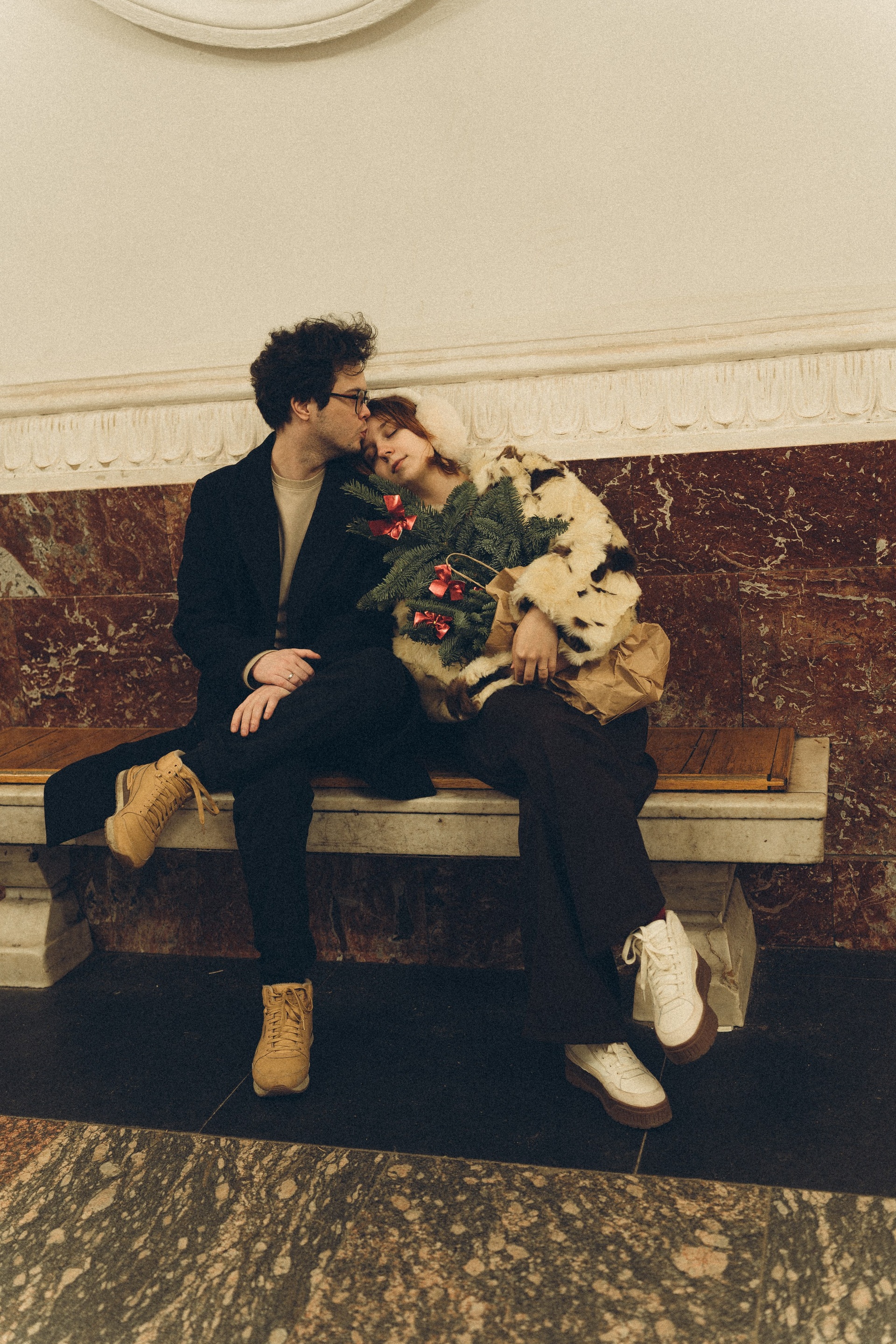 НОВОГОДНЯЯ ФОТОСЕСИИЯ ПАРЫ В МЕТРО ЛЮБОВЬ
